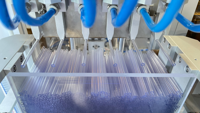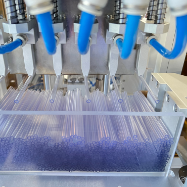 我们的全自动导尿管组装机从上料到成品都是全自动化生产,每小时可以处理3200根导尿管,大大提升了生产效率,并有效减少了人工干预带来的错误或污染